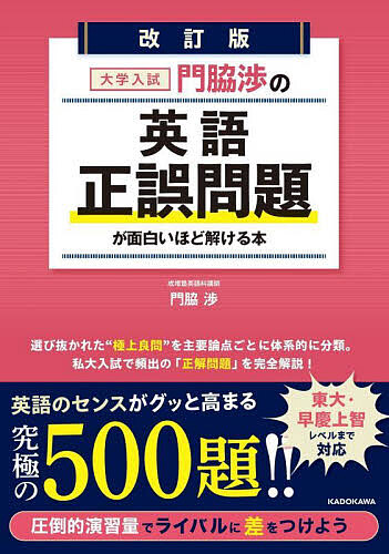 本書では、「入試問題研究オタク」として知られる門脇先生が、2000年度以降に主要大学で出題された「正誤問題」を徹底分析! その中から、選りすぐりの500題を詳細に解説し、「正しい英語」「正しい英文法」への洞察を深められる構成としました。