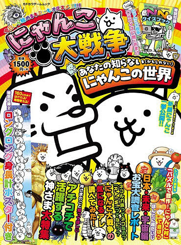 『にゃんこ大戦争』のさまざまなヒミツに迫る情報を集約した特別ムックがついに発売。攻略情報をまとめた「バトル必勝虎の巻」とともにファンなら必携の完全保存版。超特大の身長計ポスター付録も要チェック!