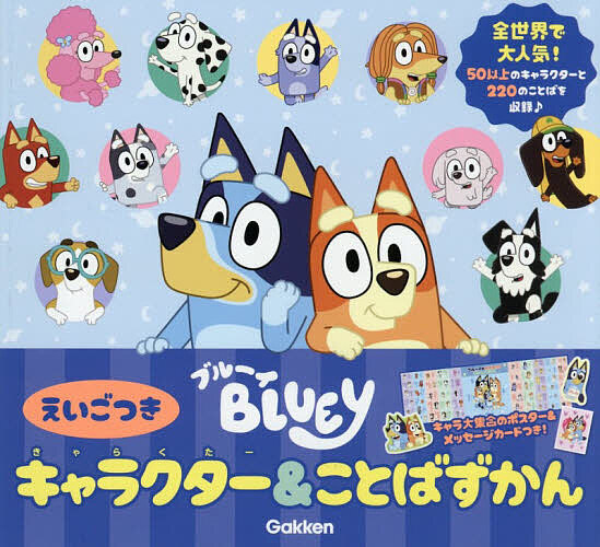 ブルーイのキャラクターと、アニメにも登場することばを大紹介。家族、親戚、おともだちなど50以上のキャラクターを掲載。ブルーイたちのヒミツもわかっちゃう。ことばずかんは英語つきで、はじめての英語の本としてもピッタリです。キャラクターが大集合したポスターつき。