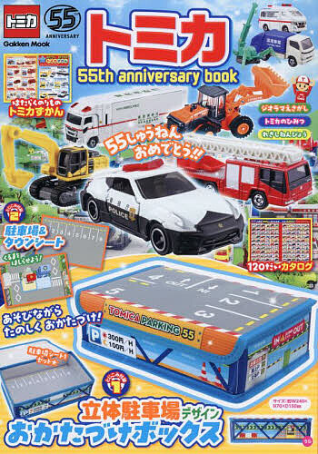 トミカ55周年を記念したスペシャルムック。トミカ図鑑、歴史年表、グッズ紹介、おでかけ情報など、トミカ好きも大満足の充実した内容。付録はおかたづけが楽しくなる、立体駐車場デザインのおかたづけボックス。切りはなして遊べるタウンマップも。