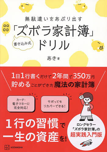 1日1行書くだけ、電子マネーやクレカなどキャッシュレス時代の、どんな家計の変化にも対応できる工夫を取り入れた「ズボラ家計簿」ドリル。家計簿を何年つけても貯金ができない、何度も家計簿に挫折してきた……そんな方のために、貯まる家計簿にするコツや家計簿つまずきポイントがわかる問題で、あなたの家計管理スキルをアップ。カンタンだから続けられる、続けるうちに「貯まるスパイラル」になる。家計簿を真面目に10年続けてもお金が貯まらなかった著者が、2年で350万円貯金できたことでも実証された家計簿の超実践入門版。