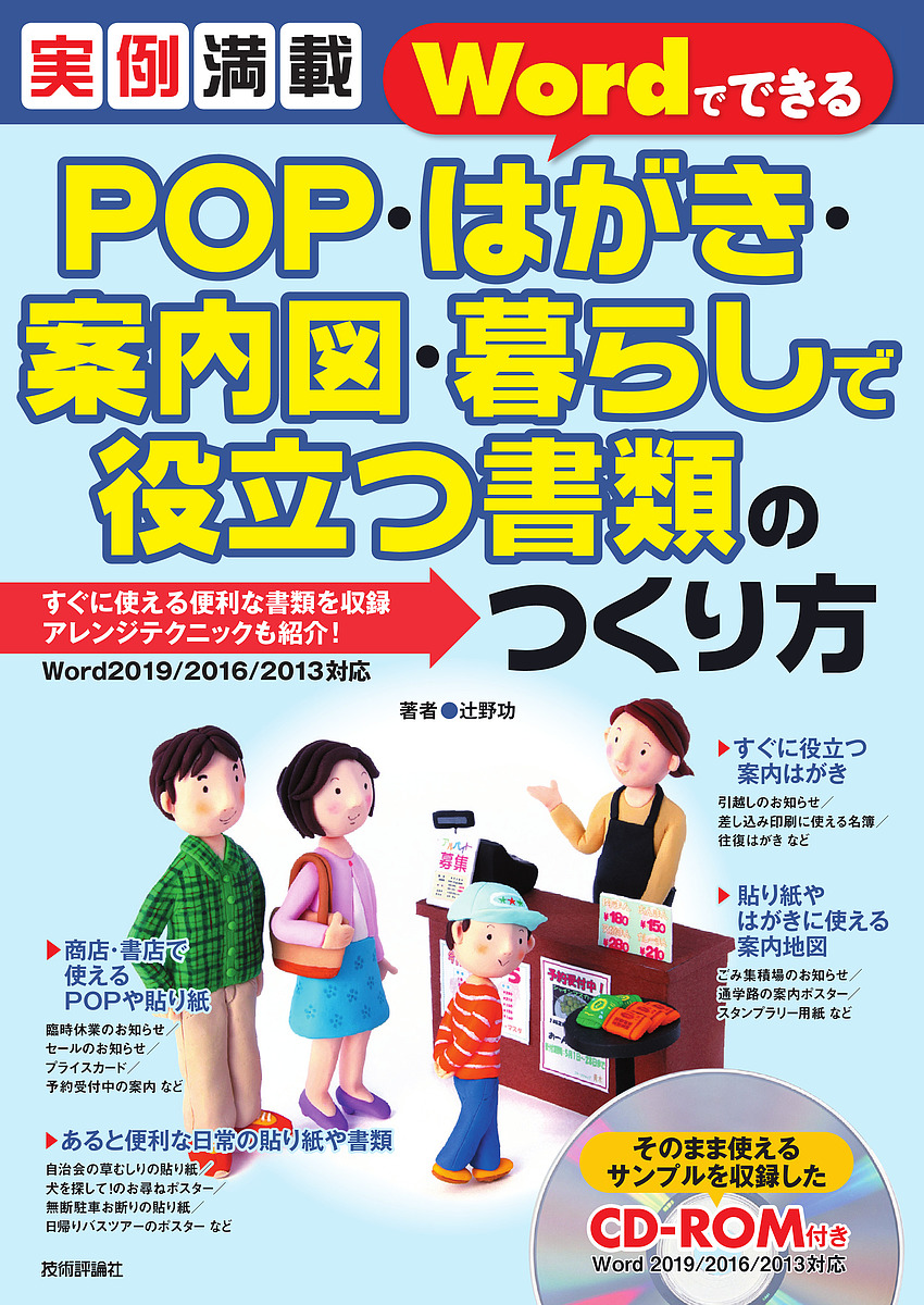 商店・書店で使えるPOPや貼り紙。あると便利な日常の貼り紙や書類。すぐに役立つ案内はがき。貼り紙やはがきに使える案内地図。すぐに使える便利な書類を収録。アレンジテクニックも紹介!Word2019/2016/2013対応。