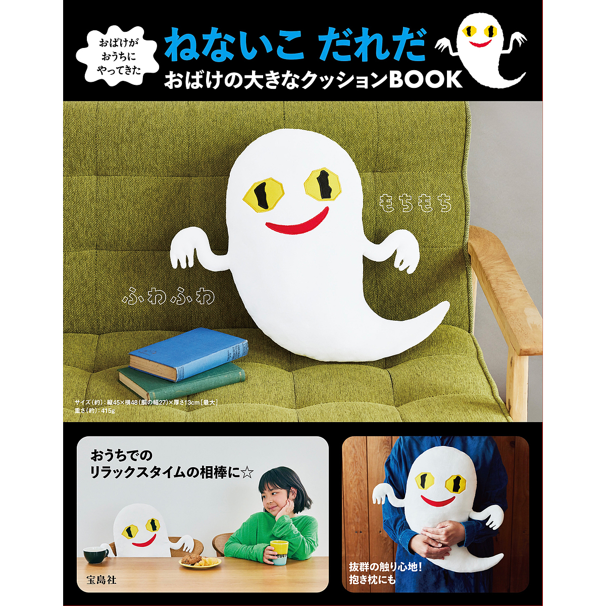 思わずぎゅっと抱きしめたくなる、ふわふわもちもちの感触。おばけの手まで細かく再現。腕の中に収まるサイズなので勉強や仕事中に抱えてもよし。背当てクッションとしても使えます。