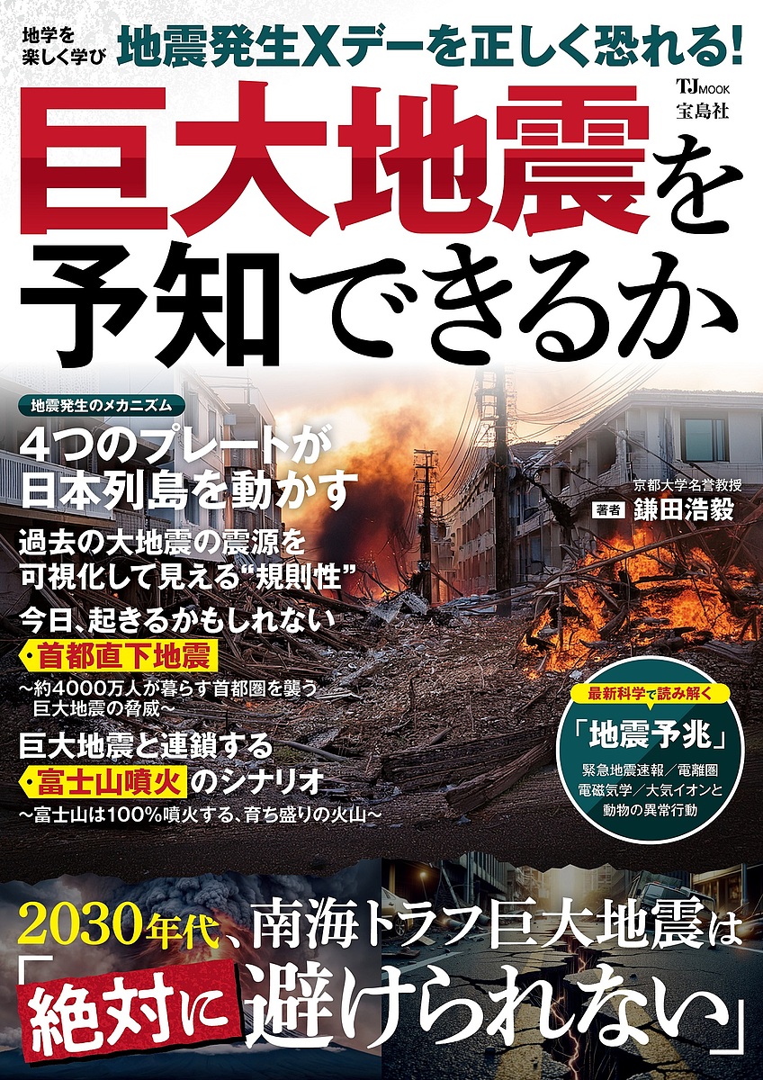 南海トラフ巨大地震の今後30年以内の発生確率は80%程度。最大マグニチュード9、死者29万人超と予想されています。本誌では来る巨大地震に備えるため、「前兆現象」と「地学」の二つの観点からあらゆる予知手段を検証します。地震予知の研究者・藤縄幸雄先生、地球科学の第一人者・鎌田浩毅先生など、地震のスペシャリストたちを取材します。