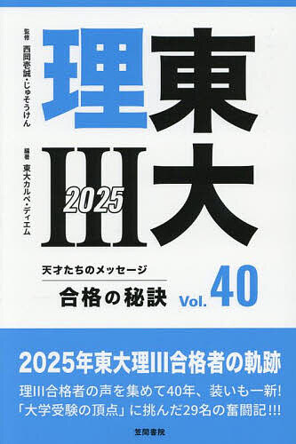 キーワード:東大理3天才たちのメッセージVol.40(2025)合格の秘訣西岡壱誠じゅそうけん東大カルペ・ディエム とうだいりさん40(2025) トウダイリサン40(2025) にしおか いつせい じゆそうけ ニシオカ イツセイ ジユソウケ