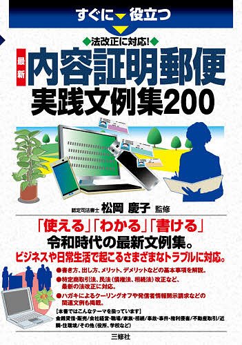 キーワード:すぐに役立つ法改正に対応!最新内容証明郵便実践文例集200松岡慶子 ビジネス書 すぐにやくだつほうかいせいにたいおうさいしん スグニヤクダツホウカイセイニタイオウサイシン まつおか けいこ マツオカ ケイコ