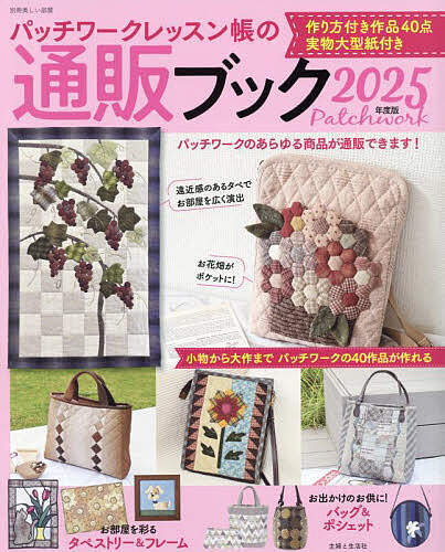 パッチワークに関するあらゆる商品が通販できる「通販ブック」。バッグやポーチ、タペストリーのキットから、ショップイチオシのさまざまなカットクロスセットや1mカット、持ち手やファスナーなど、バラエティ豊富にそろいます。通販はショップに直接注文する方式なので、好みの色でのセットや、作り方をていねいに教えてくれるショップなど、きめ細やかな対応が魅力です。通販期間は1年間。掲載ショップは新作1点の作り方付きです。さらに通販商品とは別に2025年度版では、作り方付き作品を大幅に増やしました。実物大型紙付きですので、通販を利用しなくても、手持ちの布で作品づくりを存分に楽しめる1冊です。