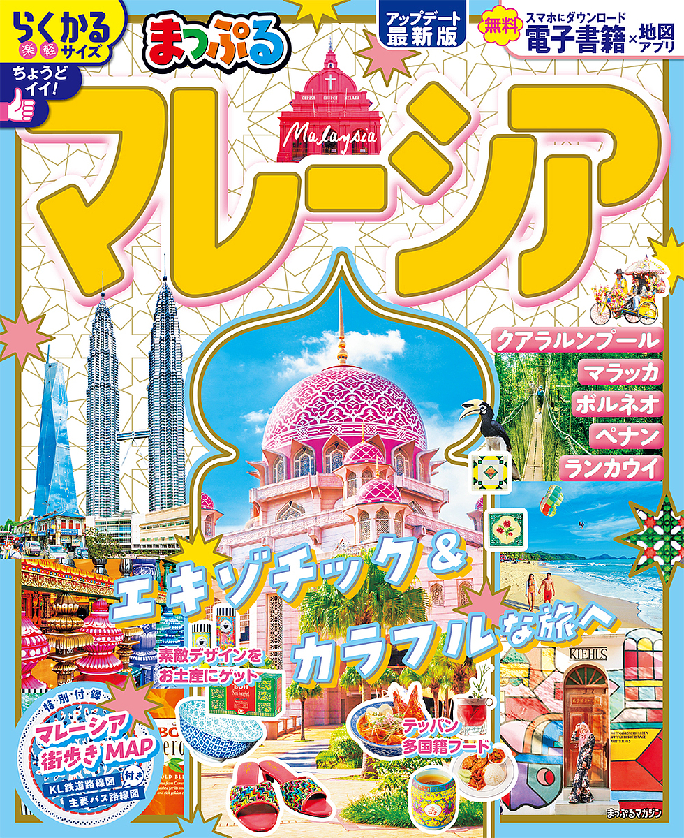 新たなランドマーク「ムルデカ118」がオープン予定など発展し続ける首都・クアラルンプールをはじめ、熱帯雨林などの自然を体感できるボルネオ島・コタキナバル、ゆったりとしたリゾート島ランカウイ、多国籍な文化が世界遺産にも登録されているペナン、マラッカなど。広大な国土の中には、多様な文化、南国の自然、SNSにアップしたい映えスポットなど、多彩な魅力にあふれています。そんなマレーシアの行きたい、食べたい、欲しいをすべてまとめた一冊です!