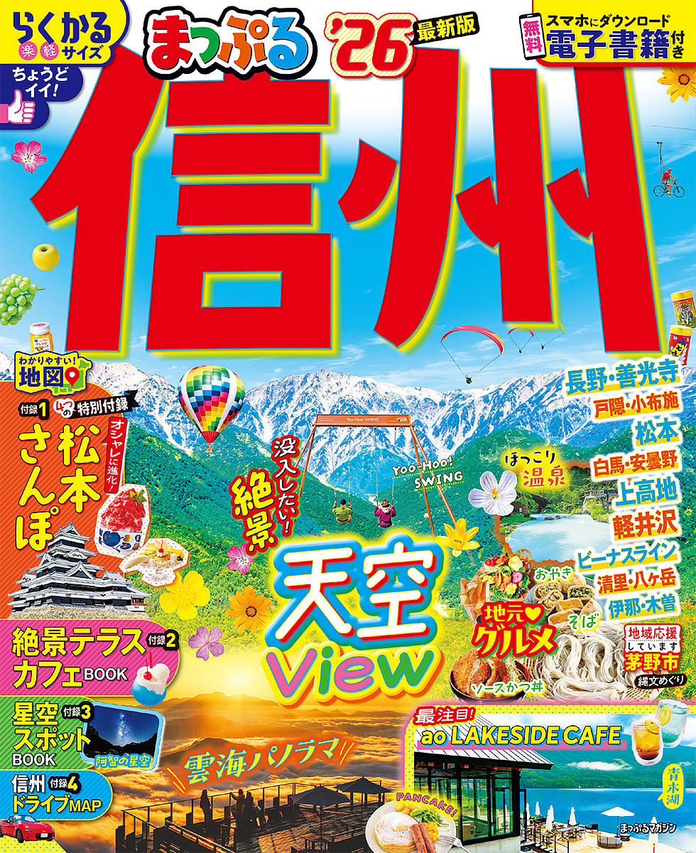 巻頭付録「松本さんぽ」、「絶景テラスカフェ」、ほか「星空スポット 」、高原ドライブコースや道の