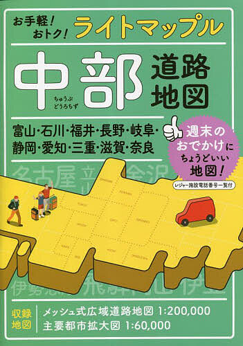 中部の主な都市の中心部は詳細な地図でわかりやすく、東海・北陸エリアおよび周辺部を収録した広域図には市町村の特産物、観光名所の一口コメント、ドライブルートを探すときに参考になる道路情報などがたくさん盛り込まれていて、眺めているだけでも楽しい地図です。