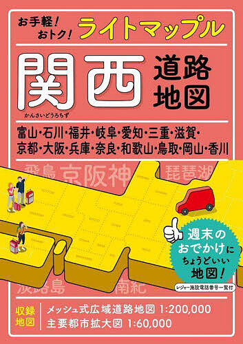 関西の主な都市の中心部は詳細な地図でわかりやすく、関西全域を収録した広域図には市町村の特産物、観光名所の一口コメント、ドライブルートを探すときに参考になる道路情報などがたくさん盛り込まれていて、眺めているだけでも楽しい地図です。