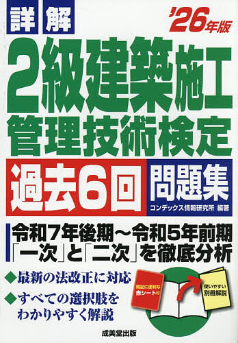 キーワード:詳解2級建築施工管理技術検定過去6回問題集’26年版コンデックス情報研究所 しようかいにきゆうけんちくせこうかんりぎじゆつけん シヨウカイニキユウケンチクセコウカンリギジユツケン こんでつくす/じようほう/けん コンデツクス/ジヨウホウ/ケン