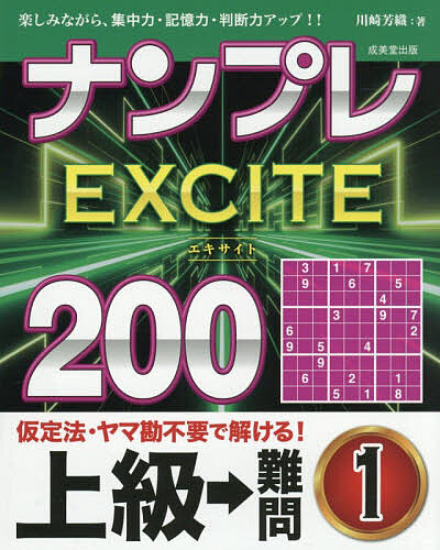 キーワード:ナンプレEXCITE200楽しみながら、集中力・記憶力・判断力アップ!!上級→難問1川崎芳織 なんぷれえきさいとにひやくじようきゆう/なんもんー ナンプレエキサイトニヒヤクジヨウキユウ/ナンモンー かわさき かおり カワサキ カオリ