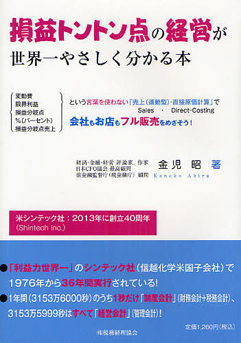 キーワード:損益トントン点の経営が世界一やさしく分かる本変動費限界利益損益分岐点%(パーセント)損益分岐点売上という言葉を使わない「売上〈連動型〉・直接原価計算」で会社もお店もフル販売をめざそう!金児昭 そんえきとんとんてんのけいえいがせかいいちやさしく ソンエキトントンテンノケイエイガセカイイチヤサシク かねこ あきら カネコ アキラ