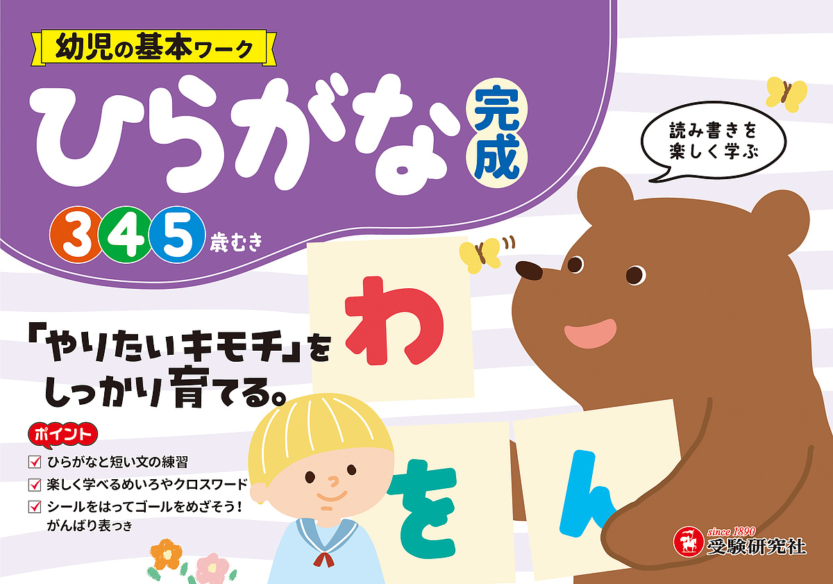 ひらがなの書き方について、1ページにつき、5字ずつ一画一画の書き順をていねいに示しているので、整った正しい文字が書けるようになります。
