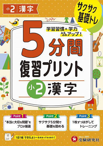 ・短時間で終わるので,次々と進めていくことができます。 ・中盤に「まとめテスト」と最後に「仕上げテスト」があるので,学んだ漢字を覚えられたか確認することができます。
