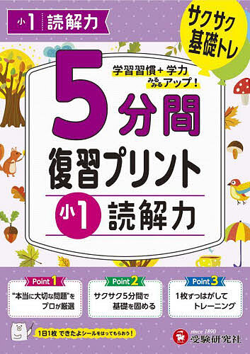・小学1年国語の読解問題を,1単元1ページあたり5分間で取り組むことができます。