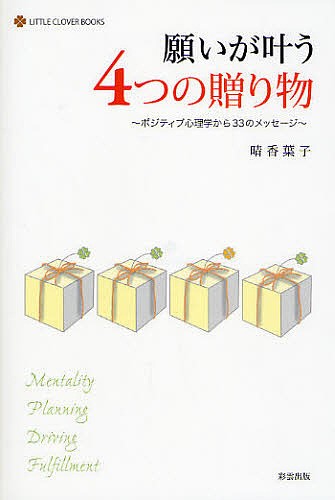キーワード:願いが叶う4つの贈り物ポジティブ心理学から33のメッセージ晴香葉子 ねがいがかなうよつつのおくりものぽじていぶ ネガイガカナウヨツツノオクリモノポジテイブ はるか ようこ ハルカ ヨウコ