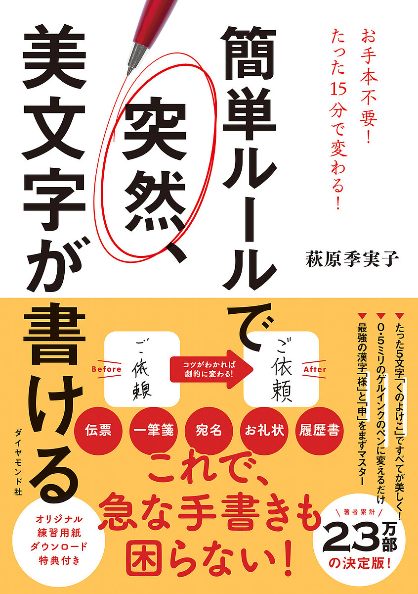 キーワード:簡単ルールで突然、美文字が書ける萩原季実子 かんたんるーるでとつぜんびもじがかける カンタンルールデトツゼンビモジガカケル はぎはら きみこ ハギハラ キミコ