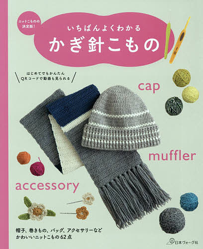 はじめてでもかんたん、QRコードで動画も見られる。帽子、巻きもの、バッグ、アクセサリーなど、かわいいニットこもの62点。