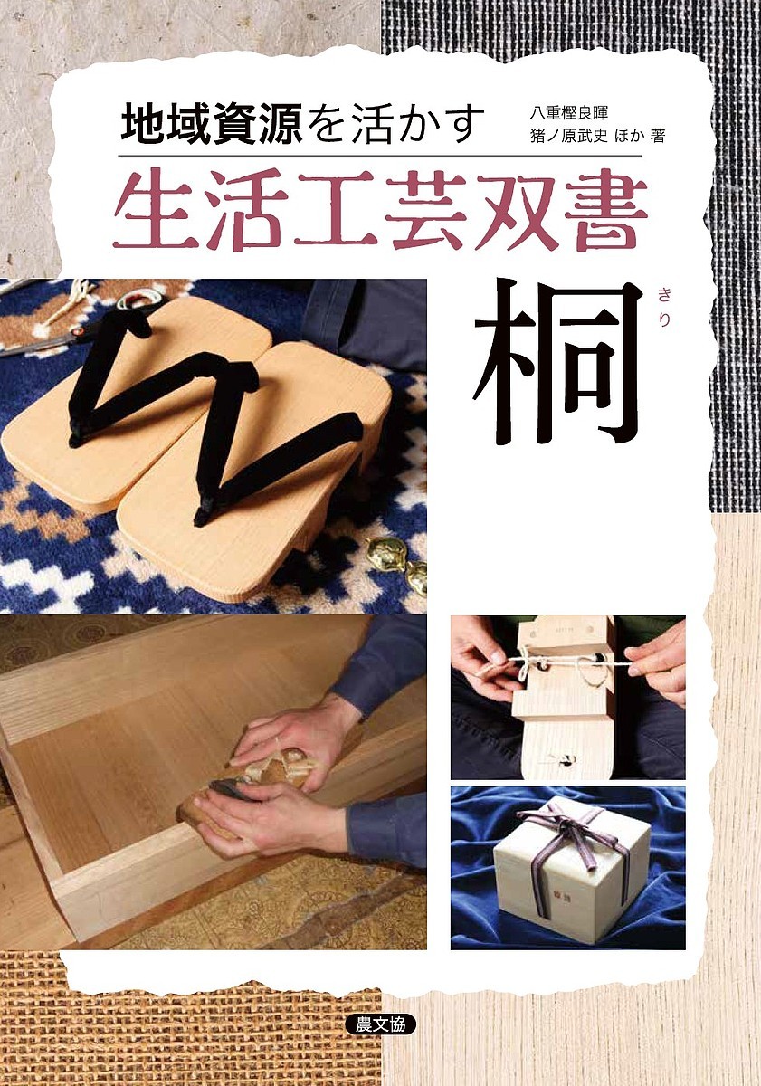 桐は葉より先に円錐形の花のかたまりが立ち上がります。桐の紋章はこの時期の花と葉をかたどったもの。いまや圧倒的に輸入材が占めますが、かつては娘が生まれたら桐を植えよといわれたほど日本人に身近だった桐を見直したい。この本では、桐たんすのつくり方、桐下駄のつくり方、桐箱のつくり方を三人の職人さんが詳しくまとめています。