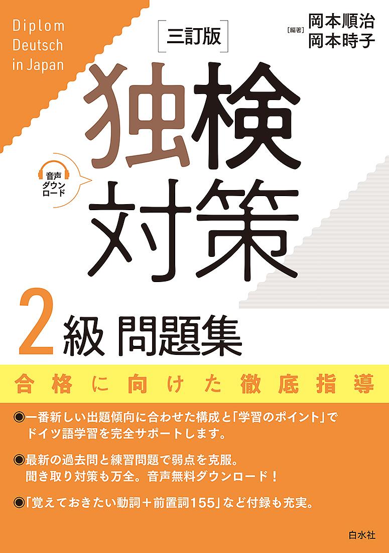 一番新しい出題傾向に合わせた構成と「学習のポイント」でドイツ語学習を完全サポートします。最新の過去問と練習問題で弱点を克服。聞き取り対策も万全。音声無料ダウンロード!「覚えておきたい動詞+前置詞155」など付録も充実。