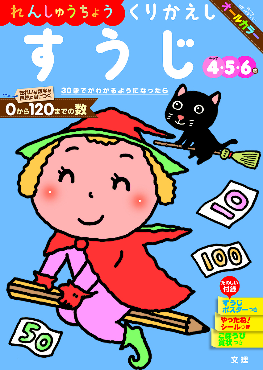 大好評!文理の幼児ドリルシリーズ!2歳から6歳まで。知育を重視した充実のドリル。●オールカラー。遊び×学習で飽きずにできる!●対象年齢めやす:4〜6歳。●0から120までの数をくり返し練習します。●まず声を出して数字を読み、ゆびでなぞってみましょう。●鉛筆でなぞるだけでなく色をぬったり楽しく取り組める構成です。●充実したふろくつき (1)すうじポスター (2)やったね!シール (3)ごほうび賞状 (4)すうじボード ●『文理の幼児ドリル』特設ページもどうぞご覧ください!●文理HPで『読者アンケート』にお答えいただくこともできます。