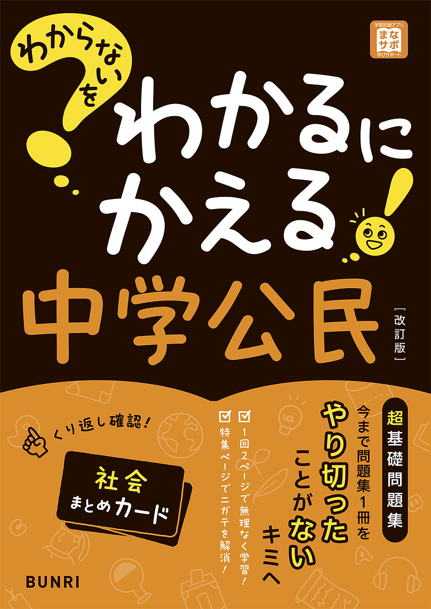 公民の重要用語を覚えられる暗記カードがついています。表に重要用語、裏に用語の説明があり、表裏どちらからでも使うことができます。もちろん、わかりやすいイラスト・写真入りです。
