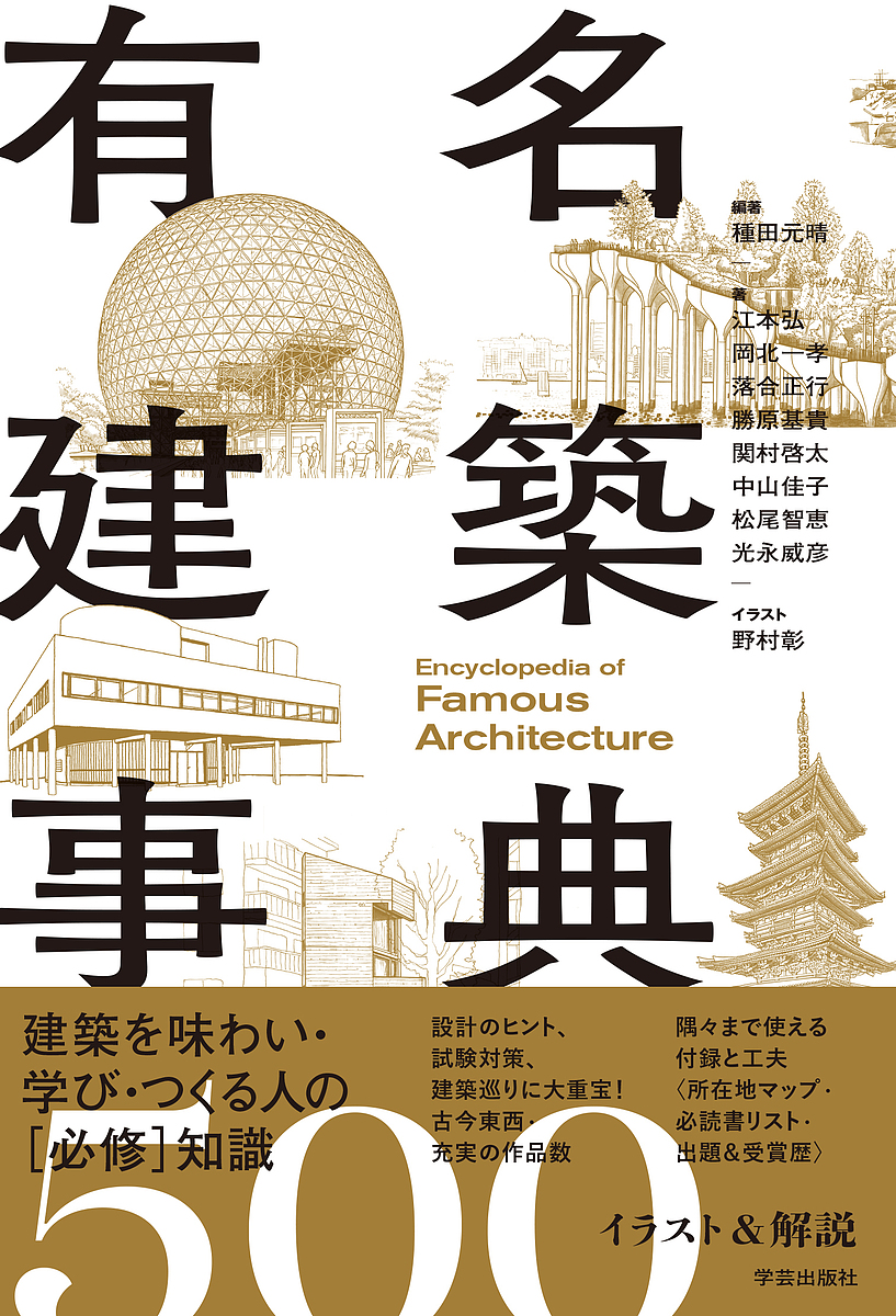 建築士試験の分析や学会賞受賞作、世界遺産や国宝を含む建築史上の重要作品などから、建築を学ぶ人が必ず知っておきたい「有名」500作品を厳選。気鋭の執筆陣による簡潔でコアな解説と特徴を捉えた手描きイラストで、設計のヒント、試験対策、建築巡りに大重宝。学生・実務者から建築ファンまで誰もが使える必携の事典!