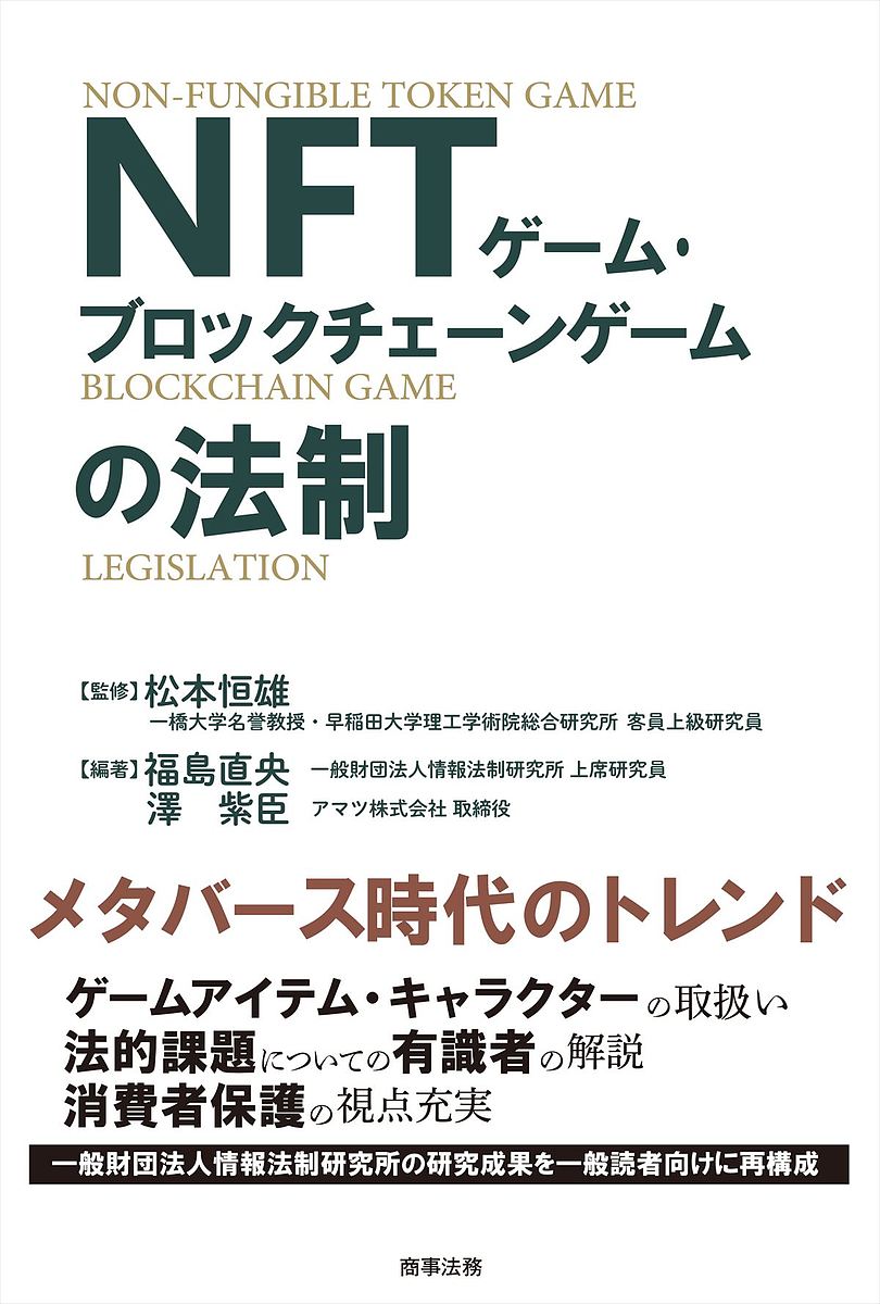 キーワード:NFTゲーム・ブロックチェーンゲームの法制松本恒雄福島直央澤紫臣 えぬえふていーげーむぶろつくちえーんげーむのほうせ エヌエフテイーゲームブロツクチエーンゲームノホウセ まつもと つねお ふくしま な マツモト ツネオ フクシマ ナ
