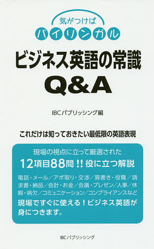 キーワード:ビジネス英語の常識Q&Aこれだけは知っておきたい最低限の英語表現IBCパブリッシング ビジネス書 びじねすえいごのじようしききゆーあんどえー ビジネスエイゴノジヨウシキキユーアンドエー あいび−し−/ぱぶりつしんぐ/ アイビ−シ−/パブリツシング/