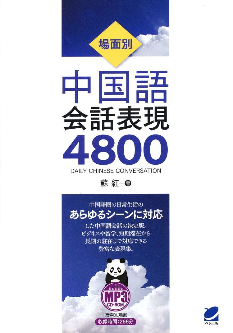 中国語圏の日常生活のあらゆるシーンに対応した会話表現4800を収録しています。「あいさつ」から「トラブルに遭う」までの18の場面を想定し、それぞれの場面ごとに「基礎編」「発展編」「実践編」を設けています。「基礎編」と「発展編」は基礎から応用までのフレーズを数多く取り上げ、「実践編」では場面ごとのリアルな対話を紹介しています。