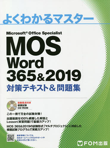 この一冊で万全の試験対策!出題範囲を100%網羅した解説とLesson(実習問題)で基礎力アップ!MOS 365&2019の試験形式「マルチプロジェクト」に対応した模擬試験プログラムで実戦力アップ!