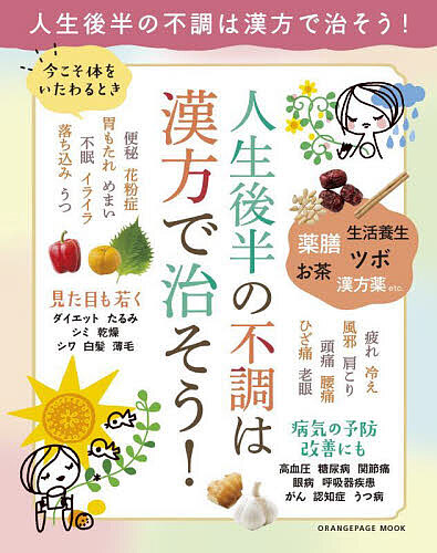 さまざまな不調が気になる「人生後半」は漢方で体を整えましょう。薬膳、生活養生、ツボ、運動などの簡単ケアで「体の不調」も「心の不調」も改善。肥満、肌老化、白髪などの「見た目の悩み」や 高血圧や糖尿病など「持病」改善に役立つケア・漢方薬も紹介。