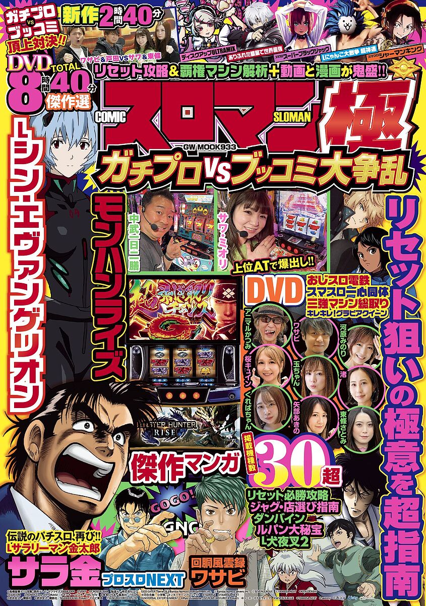 『スマスロのリセット攻略記事』と『パチスロ漫画&動画』がドッキングした夢の雑誌『スロマン極 ガチプロVSブッコミ大争乱』が発売!! TOTAL収録時間8時間40分OVERのDVDと傑作漫画の数々、そして機種攻略記事は見応え十分!!!