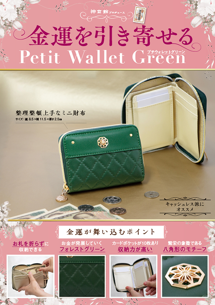 金運を引き寄せるPetit Wallet Greenは、名前の通り金運アップのポイントが満載!