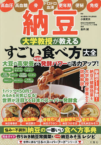 健康栄養の塊でコスパにすぐれた日本を代表するスーパー発酵食品「納豆」の健康パワーを最大限に得られる最高の食べ方を伝授!大豆の高栄養×納豆菌の発酵パワーで活力アップ!学術データ多数!納豆の健康効果を大学教授・栄養士が詳細解説!1パック約50円でみるみる元気になる!世界が注目する日本のスーパー発酵食。悩みの不調別納豆の一番いい食べ方事典。完全ガイド 作りおき納豆常備菜&新提案 納豆みそ玉レシピ。