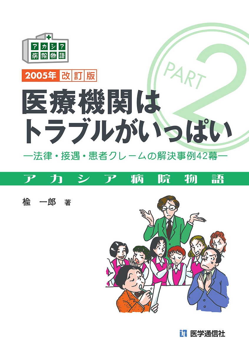 ◆入院保証金と証券業界の“常識”◆診断書の正しい書き方教えます◆医療費の説明はむずかしい◆未収金と“善管注意”◆“ロスタイム”と預り金◆来院時心肺機能停止状態と保険請求◆少額訴訟制度と“逆転思考”◆「交通事故は扱ってません!!」◆労災隠しが発覚すると◆「不正請求」は画期的な経営改善策?◆通勤災害と“逸脱”した2人◆「高すぎる」文書料◆僕は「広告戦略見直し委員会」の委員長◆デビットカードで未収金は解決?◆1泊2日の室料差額と“ズボン裾詰め平等理論”◆ご令嬢の“外泊の理由”◆医療機関はトラブルがいっぱい◆訪問看護時に許される医療行為とは?◆「増患増収対策プロジェクト」:差額ベッド料の見直し◆“ストーカー”を追いかけて◆「無断転床の法的問題」を電子メールで配達?◆海峡を越える“聴診ホース”と遠隔医療◆「電車が遅れたのは当院の責任じゃありません」◆「さあ,みんなで療養担当規則を唱和しようじゃないか」◆ネガティブオプション◆“困った”患者◆駅前居酒屋「危機管理委員会」◆“禁断”の療養担当規則◆セクハラ裁判は“藪の中”?◆ラジカセ的“未来形”講座◆間違いだらけの患者応対術──その他全42話