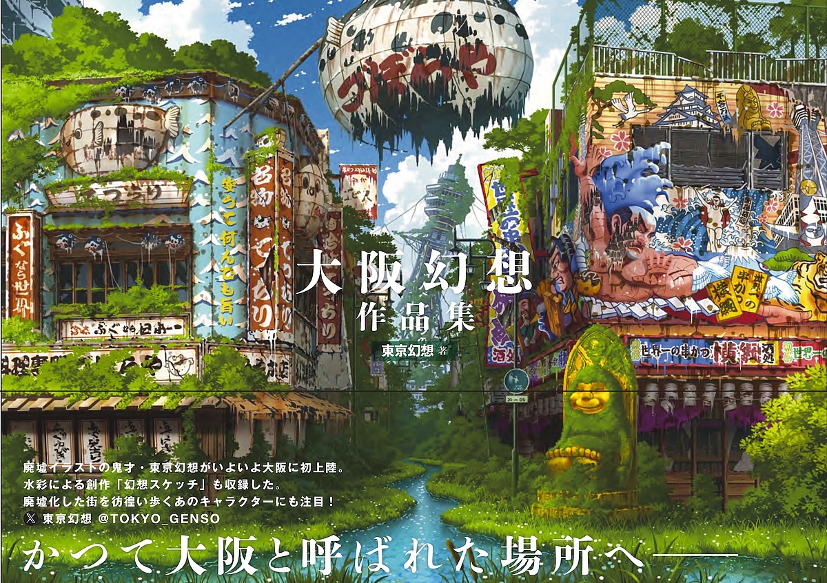 廃墟イラストの鬼才・東京幻想がいよいよ大阪に初上陸。京都や兵庫、さらには水彩による創作「幻想スケッチ」も収録した。廃墟化した街を彷徨い歩くあのキャラクターにも注目!