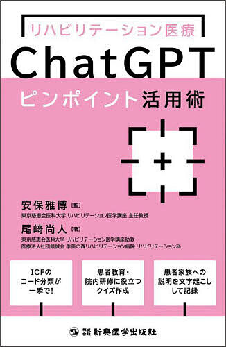 キーワード:リハビリテーション医療ChatGPTピンポイント活用術安保雅博尾崎尚人 りはびりてーしよんいりようちやつとじーぴーていーぴ リハビリテーシヨンイリヨウチヤツトジーピーテイーピ あぼ まさひろ おざき なおと アボ マサヒロ オザキ ナオト