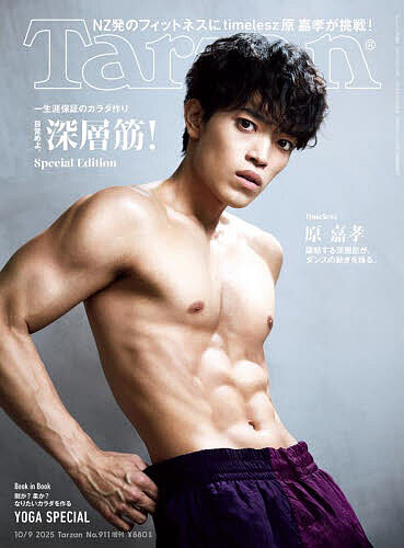*Tarzan911号通常版とTarzan911号増刊号は、表紙のみが異なり内容は同一です。腸腰筋、菱形筋、前鋸筋…。人体の奥にあって見えないけど、人生を豊かにする筋肉大研究。ボディメイクに直接繋がる表層筋ではなく、目に見えないインナーマッスルを掘り起こし、稼働させる重要性を説く特集です。機敏に動ける、疲れにくい、姿勢が良くなる、動じない、首痛や肩こり、腰痛などの不調が減る、加齢を感じさせない、ケガのリスクが減る、脳とカラダの連携が強化される…、実はこれらすべて深層筋=インナーマッスルを鍛えることで得られるメリット。そこで、鍛えるべき注目の深層筋群を7つピックアップ、具体的にどの筋肉群があなたにとっての弱点なのかを、手軽にできるチェックテストであぶり出していきます。その結果をもとに、弱点の筋肉を的確に整え、鍛えていく大作戦です。特別貼り込み企画としては、深層筋を呼び覚まして、なりたいカラダに導く「SPECIAL YOGA BOOK」をご用意。筋肉質のカラダと、しなやかなカラダ、2つのメソッドからチョイスして楽しめます。ほかにも、注目のピックルボールやフライボードなどのアウトドアアクティビティ、竹馬、けん玉、靴飛ばしなどの昔ながらの外遊びで深層筋を鍛えていく提案も。深層で眠っている筋肉を掘り起こし、映えて使えるカラダになれる一冊です。グラビア企画は、今年新メンバー加入したtimeleszの原 嘉孝さんが、NZ発のフィットネスに鍛え抜いたカラダで挑戦、こちらも要チェック。