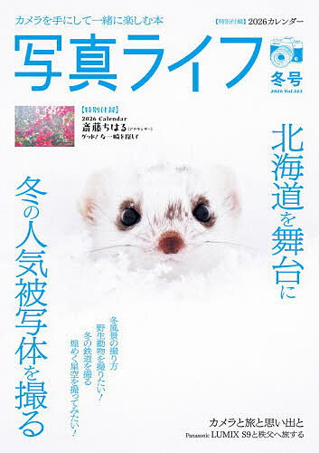 特集 北海道を舞台に冬の人気被写体を撮るPart1 憧れの北海道でレッスン 冬風景の撮り方北海道の一年で最も長い季節が冬。約半年の間、雪との生活が待っています。でも、写真的には最も魅力的なシーズン。真っ白なキャンバスはさまざまな色に染まり、多彩な表情を見せてくれます。また、厳しいからこそ出会える自然現象も魅力の一つ。厳冬期にしか見られない自然の造形は、北海道で撮影する上で最も重要なモチーフです。Part2 北海道を舞台に野生動物を撮りたい!北海道は野生動物の宝庫。一度は撮りたい被写体です。とはいえ、相手は生き物ですから、向き合い方を知っておかないと撮れないばかりか、多くの人に迷惑がかかります。まずはそんな心構えから、自然写真家の高橋忠照さんに教えてもらいます!Part3 冬の鉄道を撮る雪の中を疾走する鉄道は絵になります。普段は雑然とした周囲の様子も雪がきれいに隠してくれて、車体の輪郭が明確に浮かび上がります。車両そのものの魅力もありますが、広大な風景を活かした撮影もいつかは撮りたいものです。情緒ある鉄道写真の撮り方をお伝えします。Part4 煌めく星空を撮ってみたい!夜空に煌めく星に憧れた写真を始めたという方もいるでしょう。私も魅了されたうちのひとり。特に北海道は漆黒の闇に浮かぶ星を撮れる場所もあって、一度は撮りにきたい場所だと思います。今回は、一発撮りで星空を撮る方法をお伝えします。そのほかに・冬の北海道ベストスポット・撮影に行ったら立ち寄りたいスポット・冬の撮影 準備編・撮影ツアーに参加してみよう・車中泊撮影の楽しみ方撮って旅するためのあらゆる情報を網羅しています。【特別付録】2026 カレンダー 斎藤ちはる(アナウンサー)「グッドな一瞬を探して〜」テレビ朝日、朝のニュース番組でおなじみの斎藤ちはるアナウンサーが撮りお取りした写真作品で1年間楽しめるカレンダーが今年も付録となります。旅好きな斎藤さんならではの各地で撮られた写真がおしゃれで素敵。ぜひ本誌と一緒にお楽しみください。