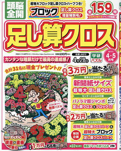 キーワード:頭脳全開足し算クロス2026年4月号 ずのうぜんかいたしざんくろす ズノウゼンカイタシザンクロス