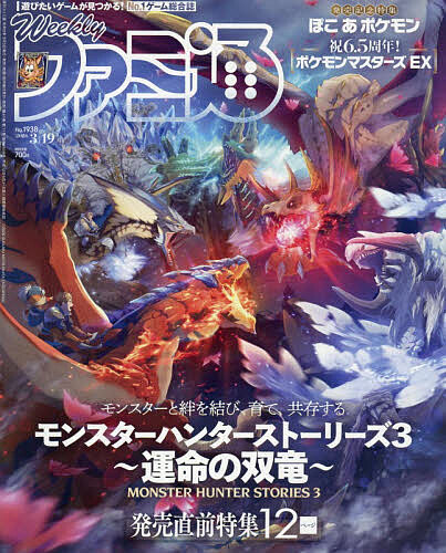 ●おもな収録記事:【発売直前特集】『モンスターハンターストーリーズ3 〜運命の双竜〜』の世界設定やキャラクター、モンスターなどこれまでの情報を総まとめ! さらにバトルシステムの核となる3すくみの仕組みや“竜気ゲージ”などのほか、オトモン集めや育成には欠かせない“里孵し”や“生態ランク”といった新要素もバッチリ紹介。開発陣インタビューも掲載と大ボリュームの内容でお届けします/【特集】指先に汗握る、挑戦心くすぐる山登りゲームを紹介。孤独に頂を目指すストイックなタイトルから、仲間と協力して楽しめるものまで、注目の話題作をピックアップ/【発売記念特集】『ぽこ あ ポケモン』を特集!