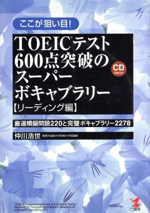 ここが狙い目!TOEICテスト600点突破のスーパーボキャブラリー リーディング編 厳選模擬問題220と完璧ボキャブラリー2278 KOU BUSINESS/仲