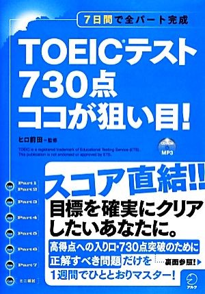 TOEICテスト730点ココが狙い目! 7日間で全パート完成/ヒロ前田【監修】