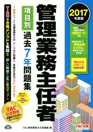 管理業務主任者 項目別過去7年問題集(2017年度版)/TAC管理業務主任者講座(編者)