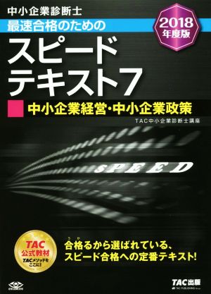 中小企業診断士 最速合格のためのスピードテキスト 2018年度版(7) 中小企業経営・中小企業政策/TAC中小企業診断士講座(著者)