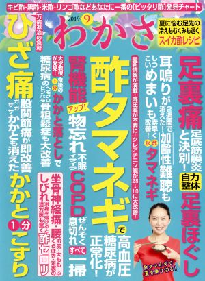 [大特集]●酢タマネギで高血圧・糖尿病が正常化!◇【マンガ】高血圧・高血糖・腎機能を大幅改善!老けない妙薬「酢タマネギ」の巻◇酢タマネギの作り方と食べ方、健康効果アップの秘技も大公開◎1日1/4 個で糖尿病の合併症を招く悪玉物質「AGE」を退けて 腎機能アップ!わかさ厳選No.1の酢ベジ酢タマネギ◎物忘れ 不眠・イライラが消えて記憶力向上!COPD で悪化した息切れセキも改善!驚異の酢タマネギパワー◎耳鳴りが2週間で解消!加齢性難聴もめまいも素早く改善!内耳の血流を促す酢タマネギ氷◎神経の痛みを取り去り坐骨神経痛を退けると漢方専門医も驚く酢セロリ◎今 大注目の血流アップ栄養シトルリンが実の2倍も多いスイカの皮の酢漬けで足の冷え、むくみ・こむら返りも一掃◎健康効果をさらにアップ!キビ酢・黒酢・米酢・リンゴ酢などあなたに一番ピッタリ酢 発見チャート◎脊柱管狭窄症の足裏のしびれもふくらはぎの激痛も一掃!血流を増やし発痛物質を排出!カラハリスイカ/◆かかと1分刺激でひざ痛・股関節痛から足底筋膜炎まで撃退◎食後に1分 かかとを上げ下げするだけで血糖値を下げるホルモンが増え全身が若返るかかと落とし◎ひざ痛 股関節痛・腰痛がその場で改善!こむら返りもガサガサかかとも消えたかかと1分こすり◎足裏の筋力低下で急増する足底筋膜炎と決別!自力整体、足裏ほぐし/…ほか