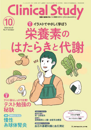 特集1イラストでやさしく学ぼう栄養素のはたらきと代謝〔執筆〕増田 敦子看護の基礎に欠かせない栄養生化学。しかし、吸収や代謝などしくみが複雑で覚えることも多く、勉強が難しい科目ですよね。本特集では、五大栄養素のはたらきや吸収・代謝の過程をわかりやすくイラストと共に解説します!特集2テスト後もしっかり定着!テスト勉強の秘訣〔執筆〕片野 裕美課題や実習の準備に追われ、合間のテスト対策が付け焼き刃になりがち……なんて人はいませんか? 本特集で、その場しのぎではなくテストの後もしっかり知識が定着する勉強法の基本を紹介します!3STEPで学ぶ!疾患Basic Study慢性糸球体腎炎〔監修〕畑中 あかね、船木 淳〔執筆〕白石 夕起子実習や国試で出合うことの多い疾患の解剖から治療、看護までをやさしく解説します。…ほか